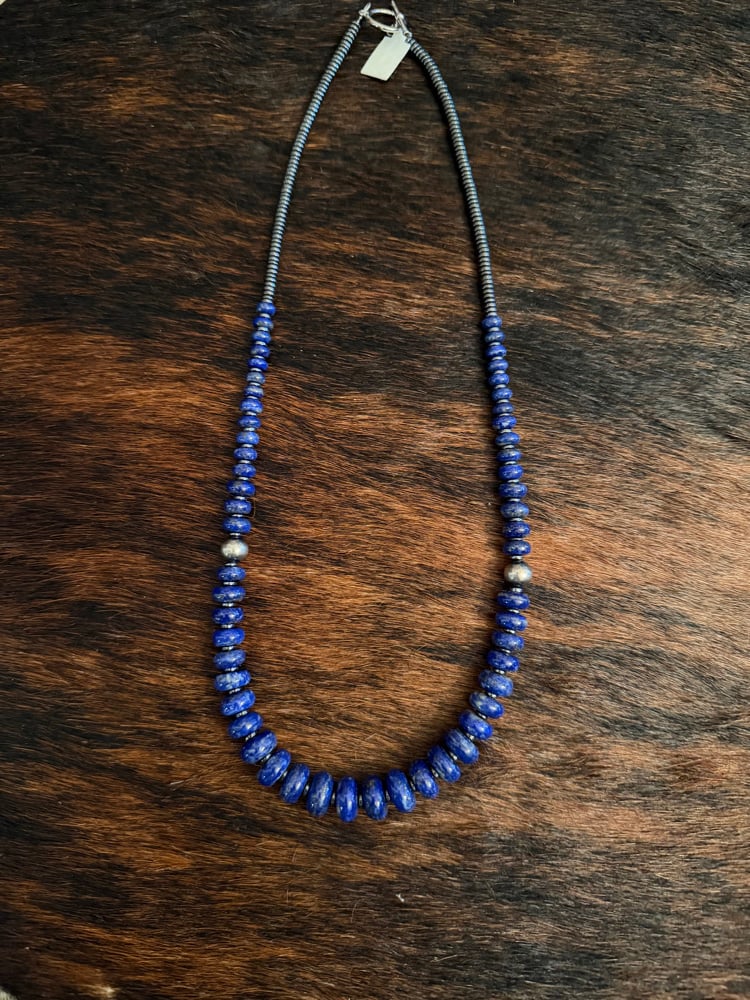21” Beautiful Blue Lapis Rondel style beads with 8mm Sterling Silver Pearls